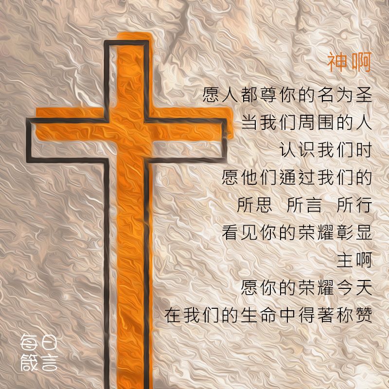 神啊,愿人都尊你的名为圣。当我们周围的人认识我们时,愿他们通过我们的所思、所言、所行看见你的荣耀彰显。主啊,愿你的荣耀今天在我们的生命中得著称赞!奉耶稣的名祈求,阿们。