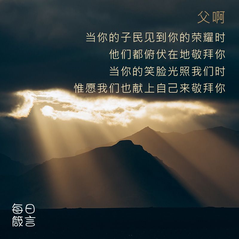 父啊,当祢的子民见到祢的荣耀时,他们都俯伏在地敬拜祢。当祢的笑脸光照我们时,惟愿我们也献上自己来敬拜祢。阿们。