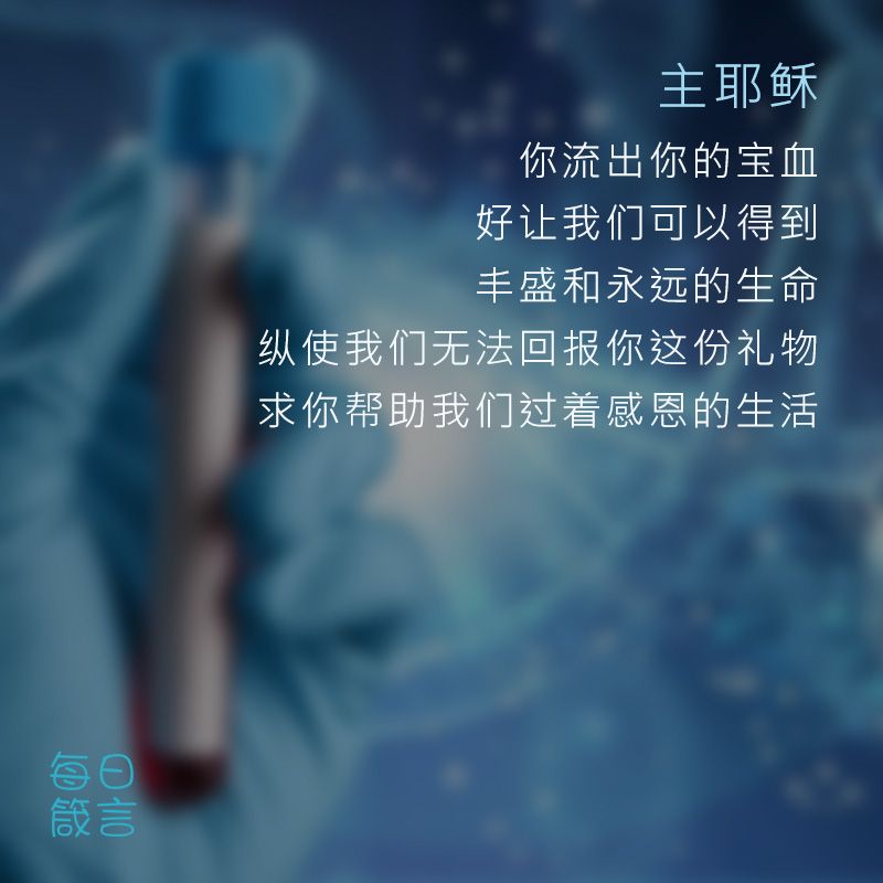 主耶稣,祢流出祢的宝血,好让我们可以得到丰盛和永远的生命!纵使我们无法回报祢这份礼物,求祢帮助我们过着感恩的生活。阿们。