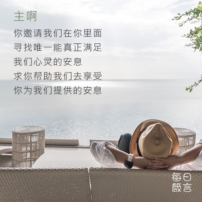 主啊,祢邀请我们在祢里面寻找唯一能真正满足我们心灵的安息。求祢帮助我们去享受祢为我们提供的安息。阿们。