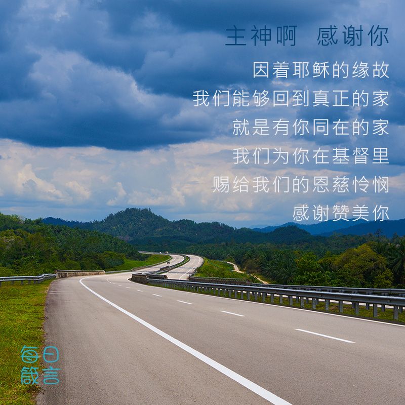 主神啊,感谢祢,因着耶稣的缘故,我们能够回到真正的家,就是有祢同在的家!我们为祢在基督里赐给我们的恩慈怜悯,感谢赞美祢,阿们。