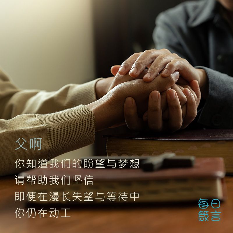父啊,你知道我們的盼望與夢想。請幫助我們堅信,即便在漫長失望與等待中,你仍在動工。阿們。