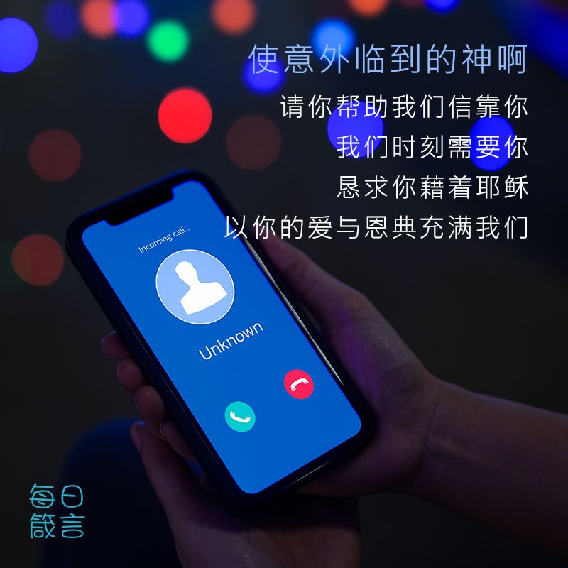 使意外临到的神啊,请你帮助我们信靠你。我们时刻需要你。恳求你借着耶稣,以你的爱与恩典充满我们。阿们。