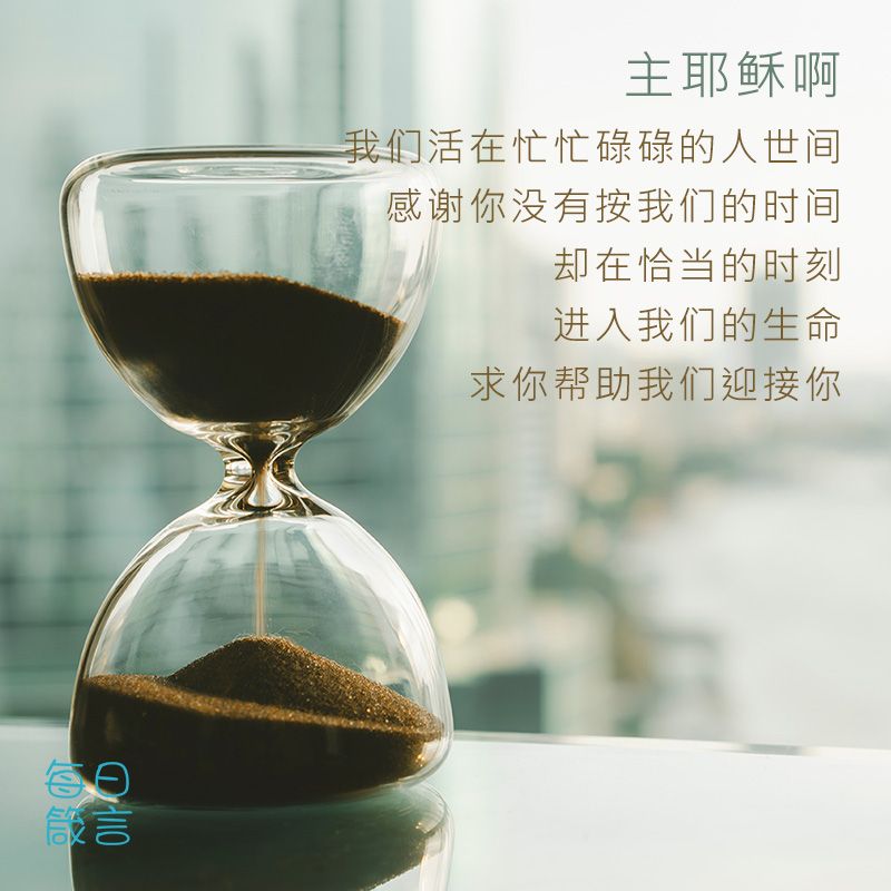 主耶稣啊,我们活在忙忙碌碌的人世间。感谢你没有按我们的时间,却在恰当的时刻,进入我们的生命。求你帮助我们迎接你。阿们。