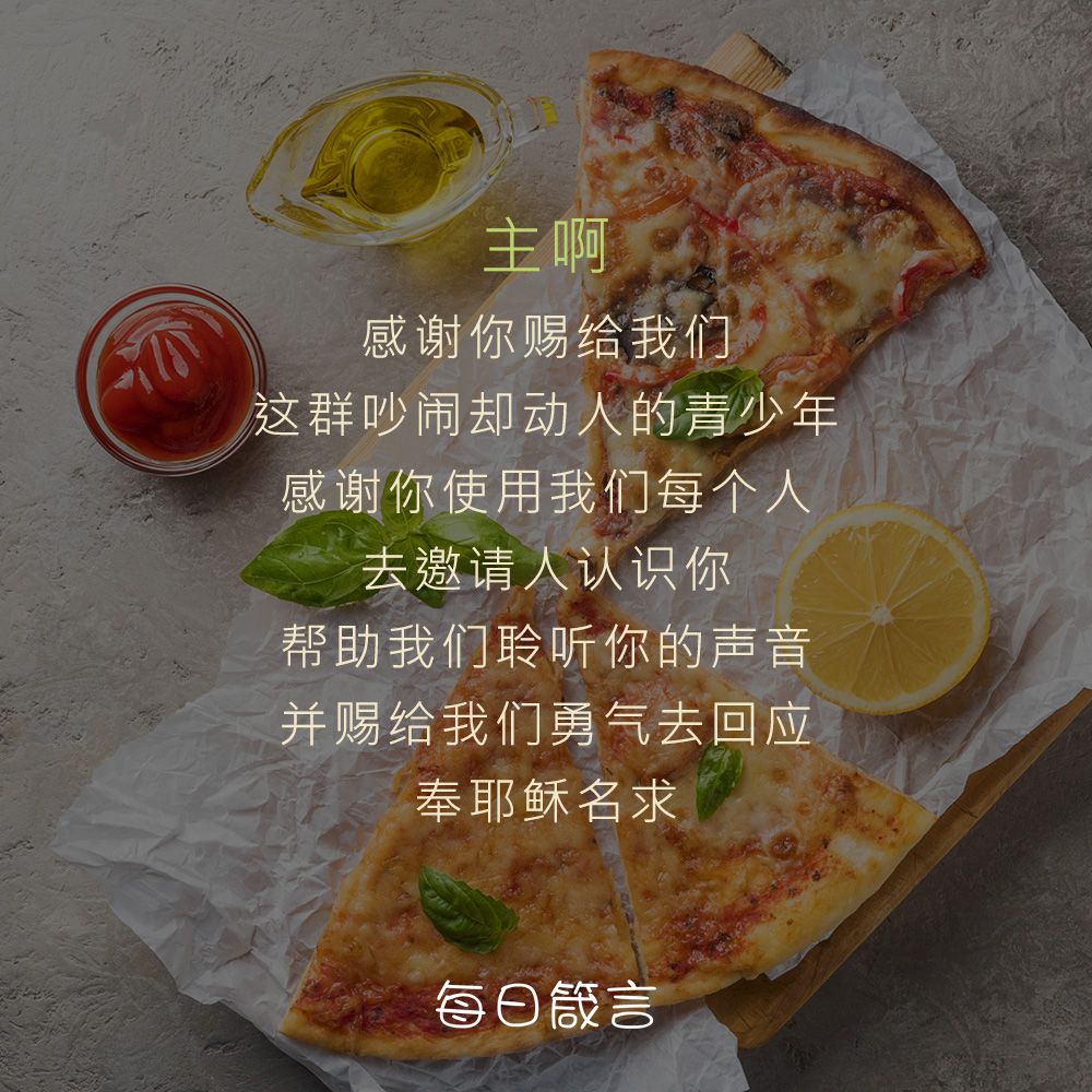 主啊,感谢你赐给我们这群吵闹却动人的青少年。感谢你使用我们每个人去邀请人认识你。帮助我们聆听你的声音,并赐给我们勇气去回应。奉耶稣名求,阿们。