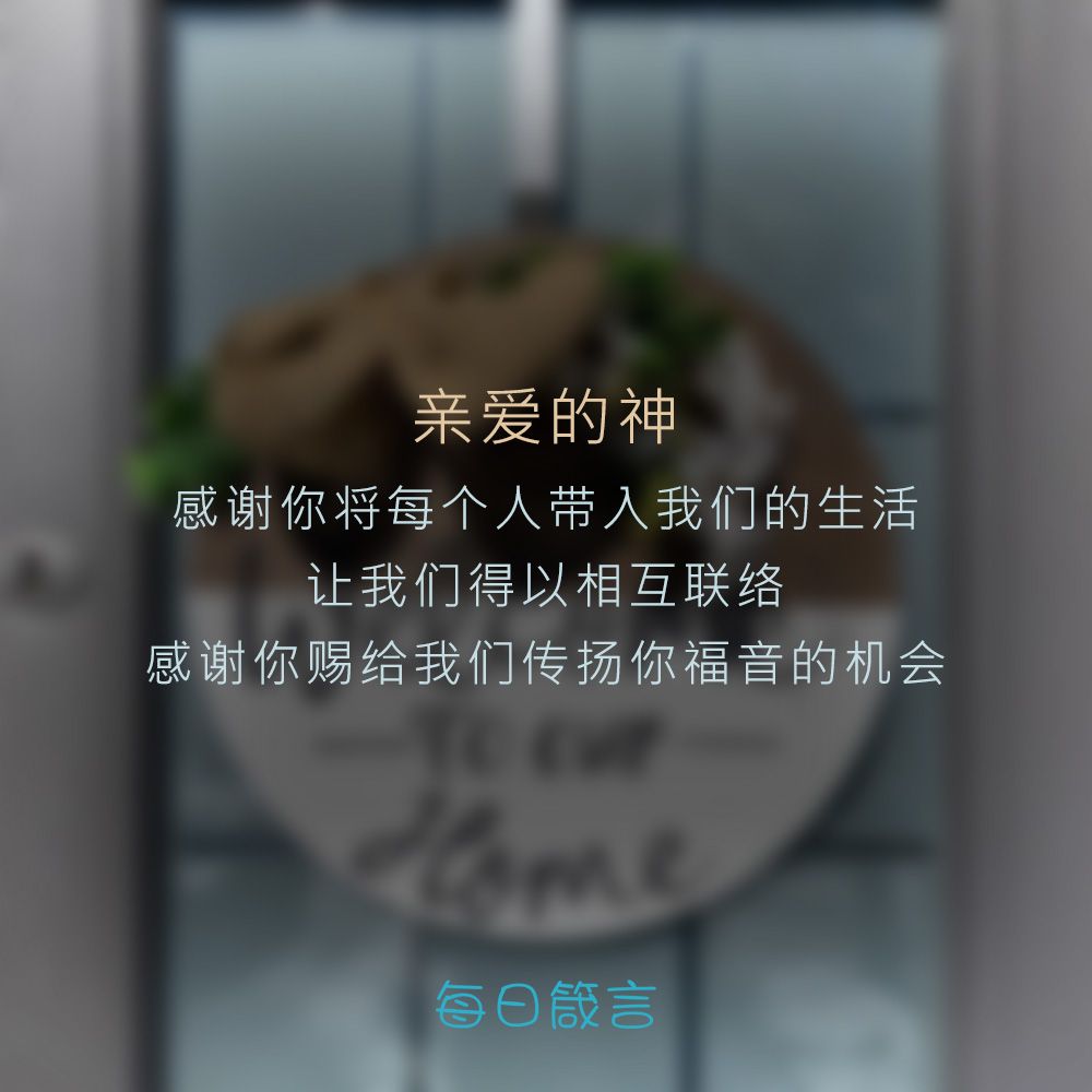 亲爱的神,感谢你将每个人带入我们的生活,让我们得以相互联络。感谢你赐给我们传扬你福音的机会。阿们。