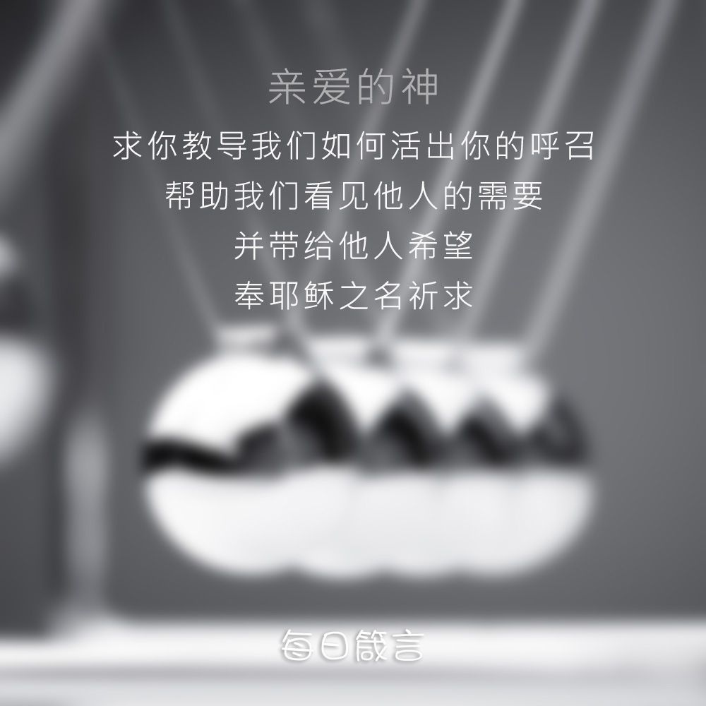 亲爱的神,求你教导我们如何活出你的呼召。帮助我们看见他人的需要,并带给他人希望。奉耶稣之名祈求,阿们。