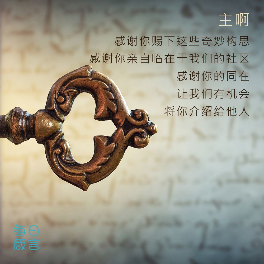 主啊,感谢你赐下这些奇妙构思,感谢你亲自临在于我们的社区。感谢你的同在,让我们有机会将你介绍给他人。阿们。
