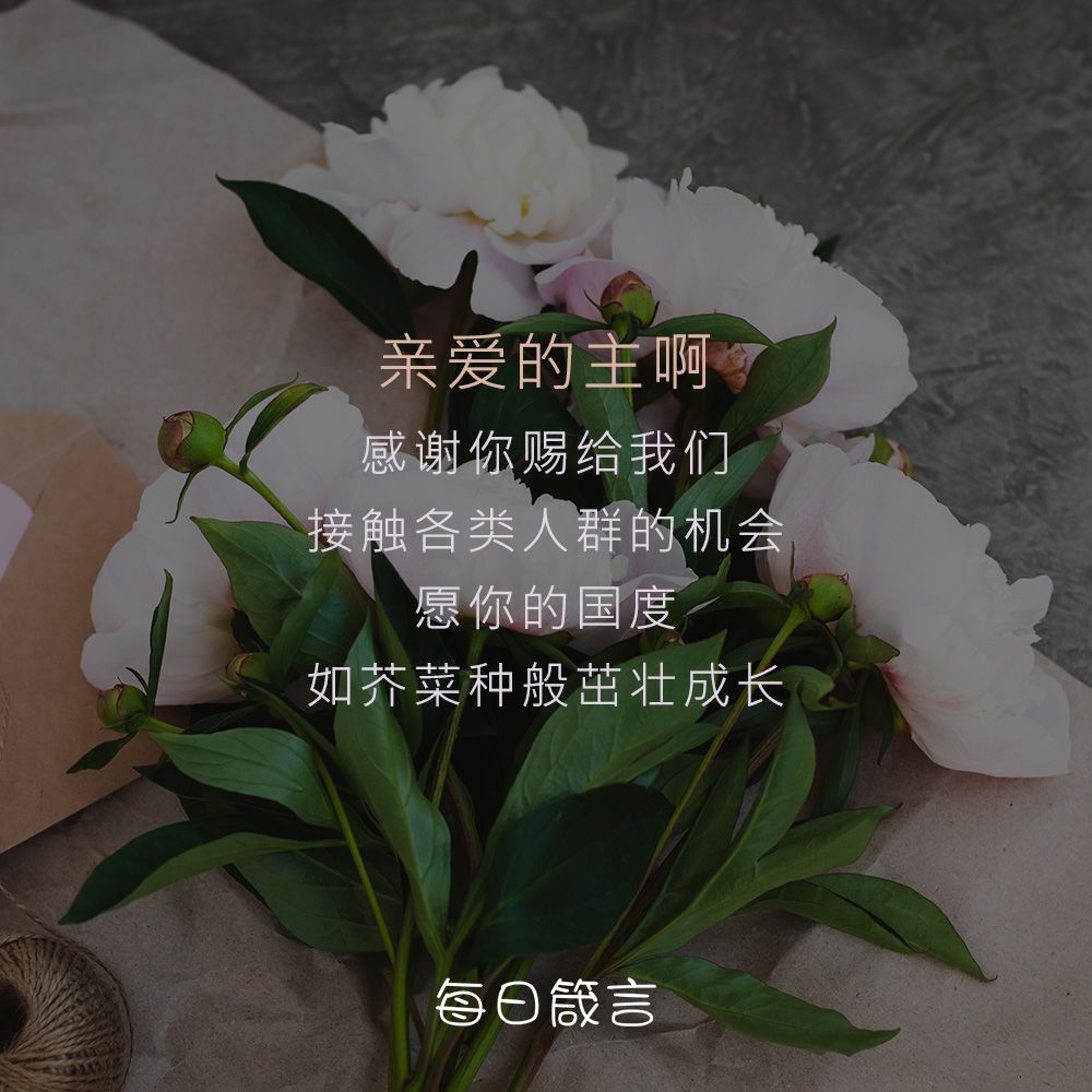 亲爱的主啊,感谢你赐给我们接触各类人群的机会,愿你的国度如芥菜种般茁壮成长。阿们。