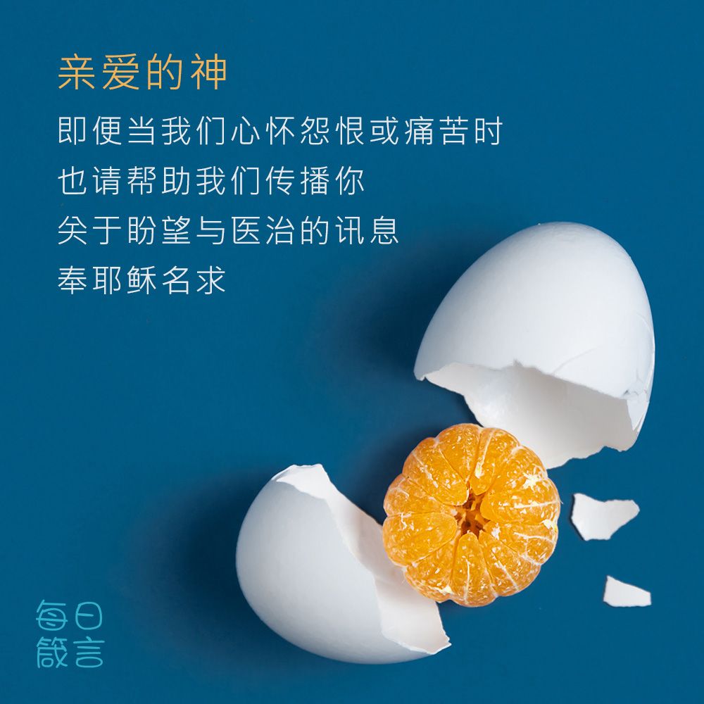 亲爱的神,即便当我们心怀怨恨或痛苦时,也请帮助我们传播你关于盼望与医治的讯息。奉耶稣名求,阿们。