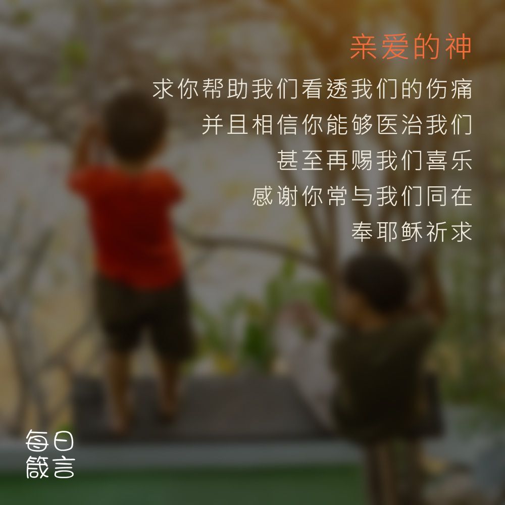 亲爱的神,求你帮助我们看透我们的伤痛,并且相信你能够医治我们,甚至再赐我们喜乐。感谢你常与我们同在。奉耶稣祈求,阿们。