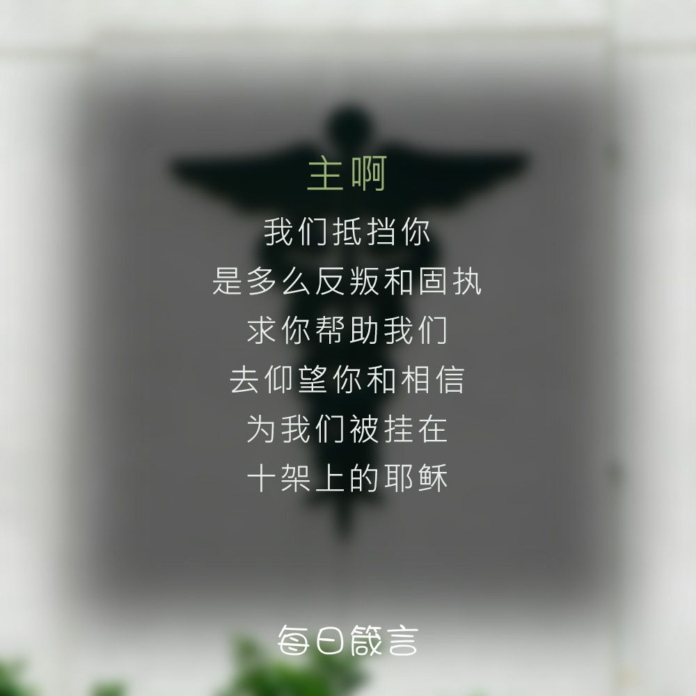 主啊,我们抵挡你,是多么反叛和固执。求你帮助我们,去仰望你和相信为我们被挂在十架上的耶稣。阿们。