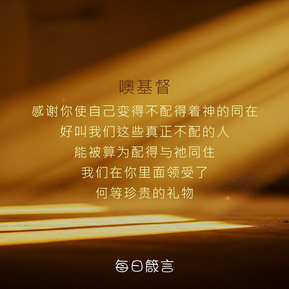 噢基督,感谢你使自己变得不配得着神的同在,好叫我们这些真正不配的人,能被算为配得与祂同住。我们在你里面领受了何等珍贵的礼物!阿们。